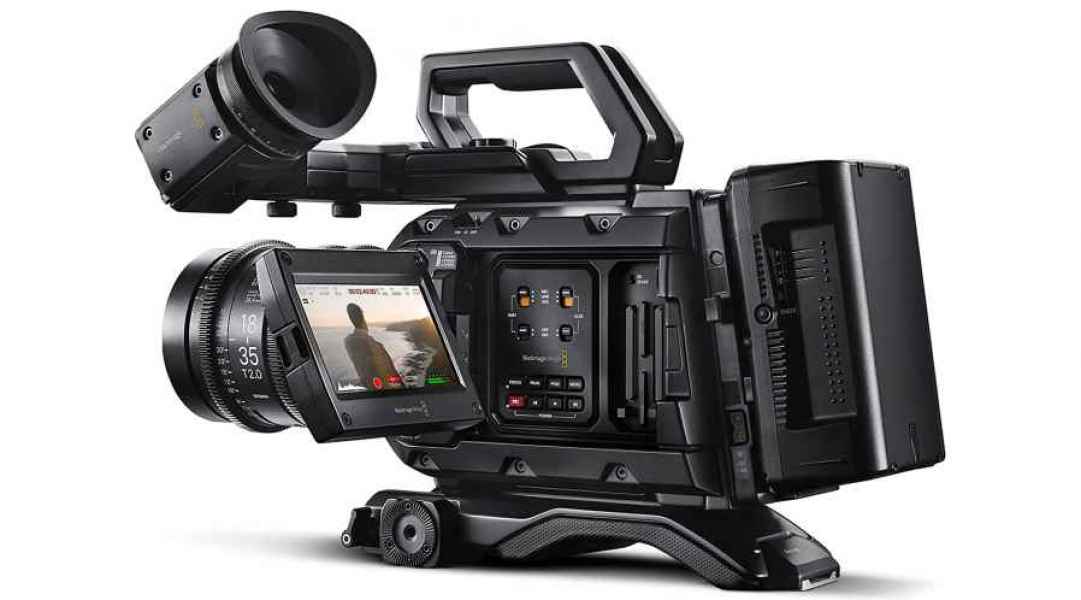 Blackmagic URSA mini Pro G2 à l'épaule avec viseur